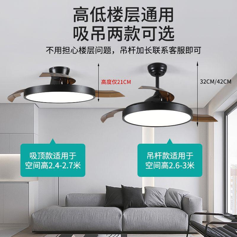 隐形风扇灯静音吊扇灯客厅餐厅卧室家用简约智能变频风扇 吊灯一体