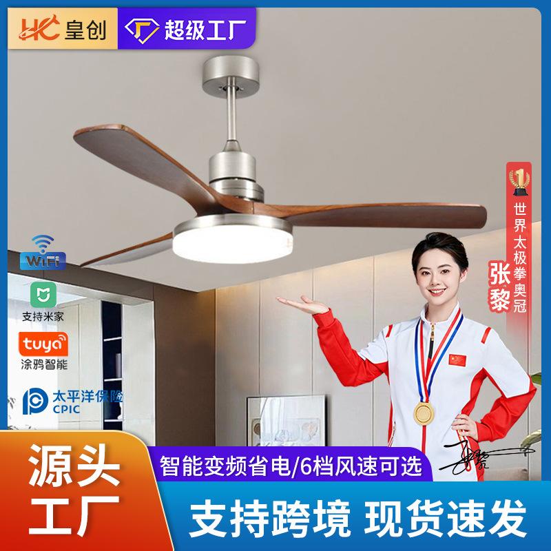 北欧变频风扇灯大风力实木静音吊扇灯餐厅客厅大灯盘智能 电扇灯
