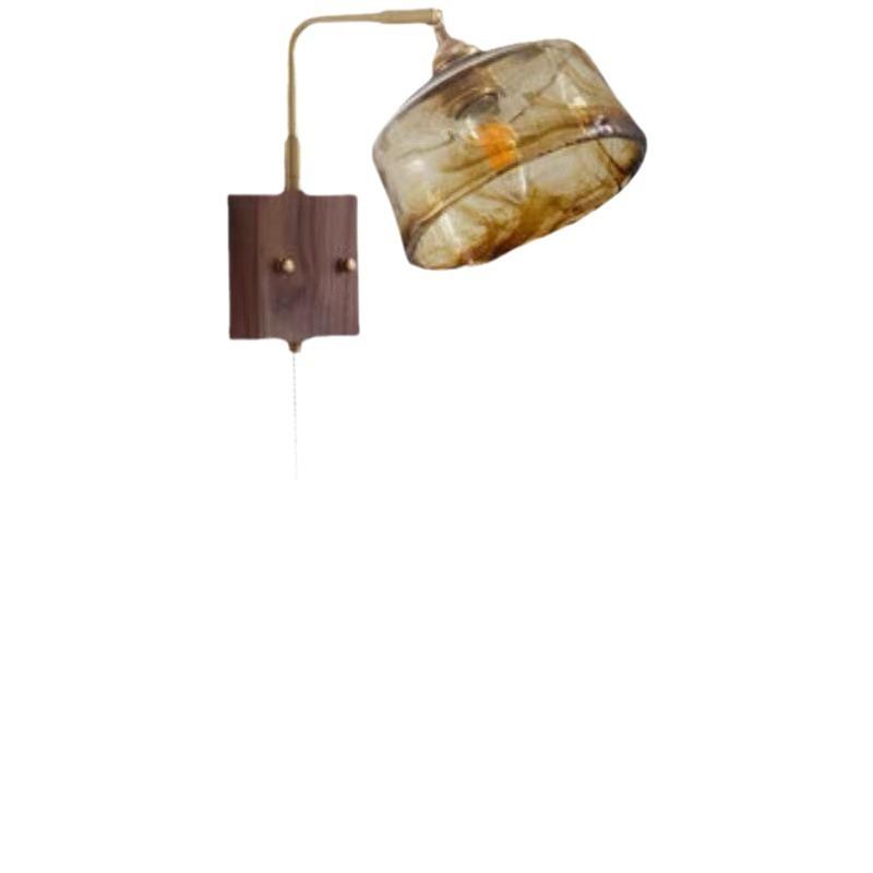 侘寂风复古全铜壁灯卧室床头拉链开关灯民宿过道背景墙胡桃木灯具