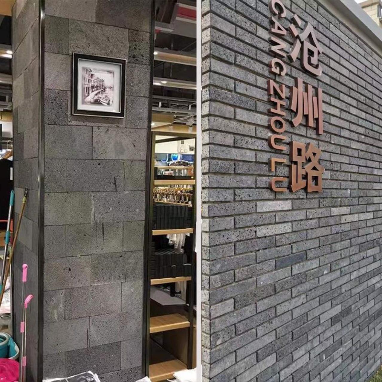 庭院地铺小孔洞深灰色火山岩板材复古外墙干挂玄武岩文化石材厂家