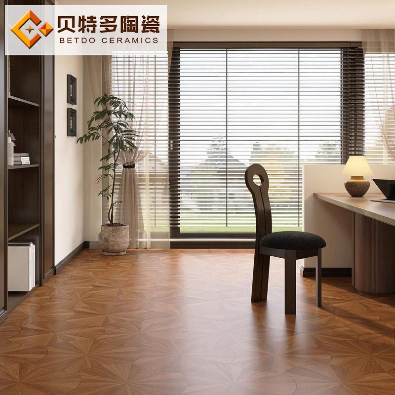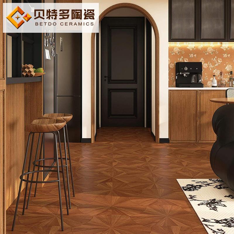 天鹅绒柔光荷叶木纹砖520x600复古瓷砖胡桃木焦糖色仿木纹地砖